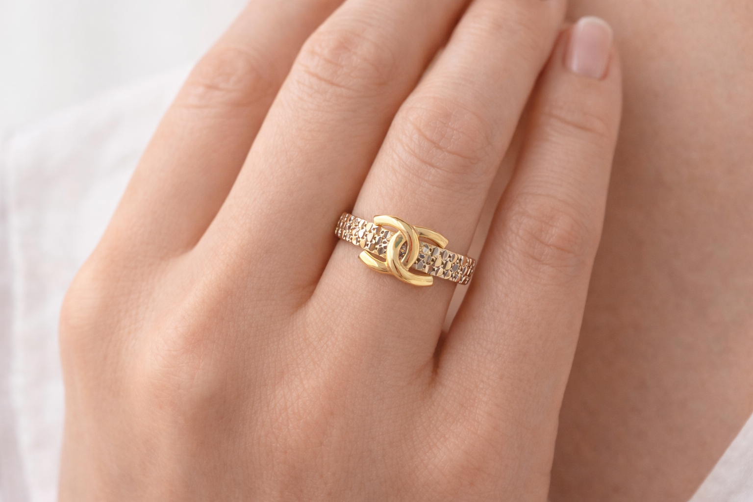 Bold. Iconic. Timeless. The Shanel CC Ring features a textured gold band elevated by a striking double-C interlock design. A statement of confidence and refined elegance, crafted to turn everyday moments into luxury.