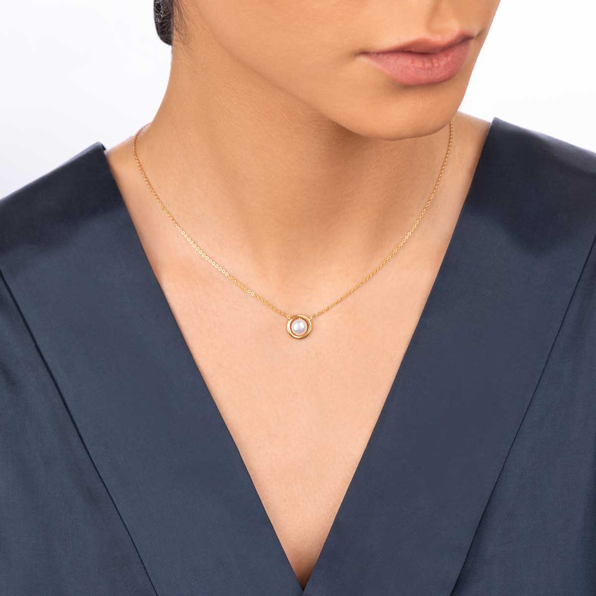 Framed Pearl Pendant Necklace – 18K Gold with Guaranteed Purity, Weight: 2.462 g